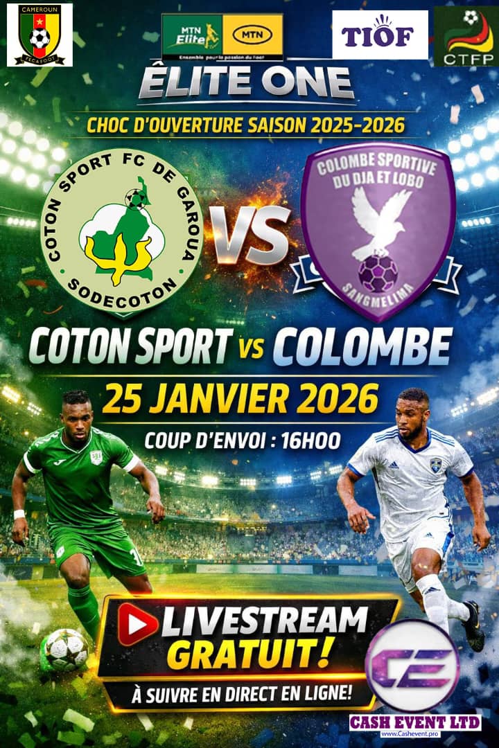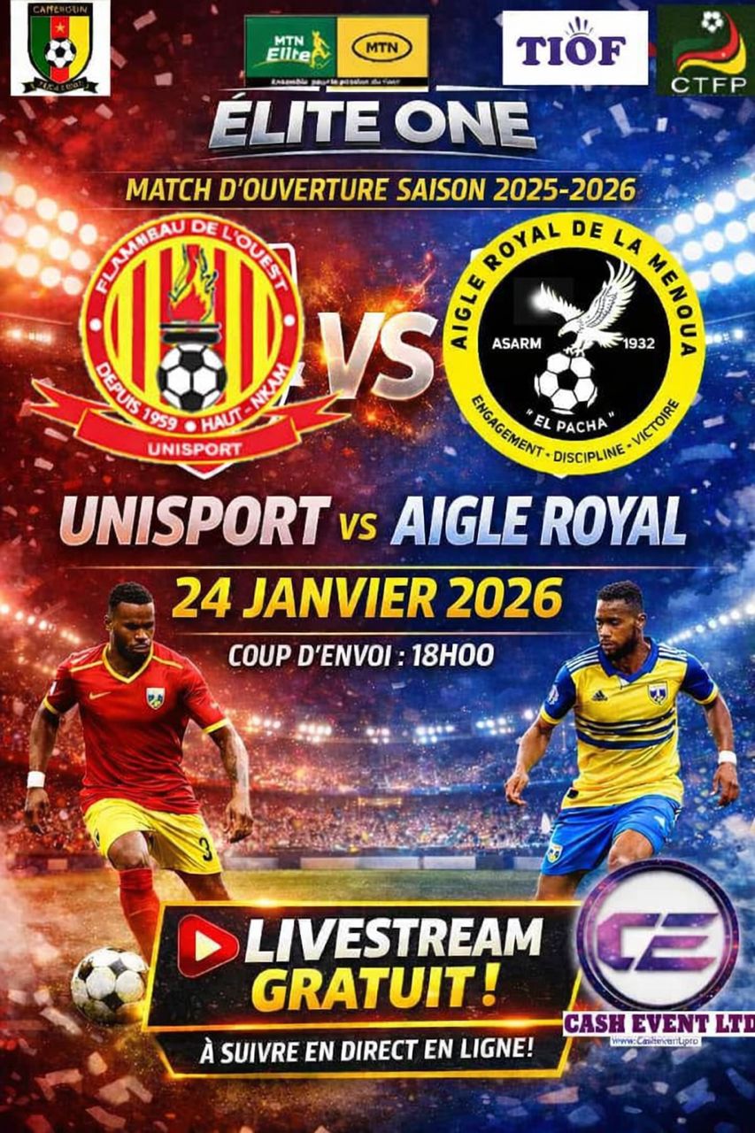 🔴 MATCH EN DIRECT – ELITE ONE CAMEROUN Suivez en livestream gratuit le match d’ouverture de la saison Elite One 2025–2026 opposant : ⚽ Unisport de Bafang🆚🦅 Aigle Royal de…